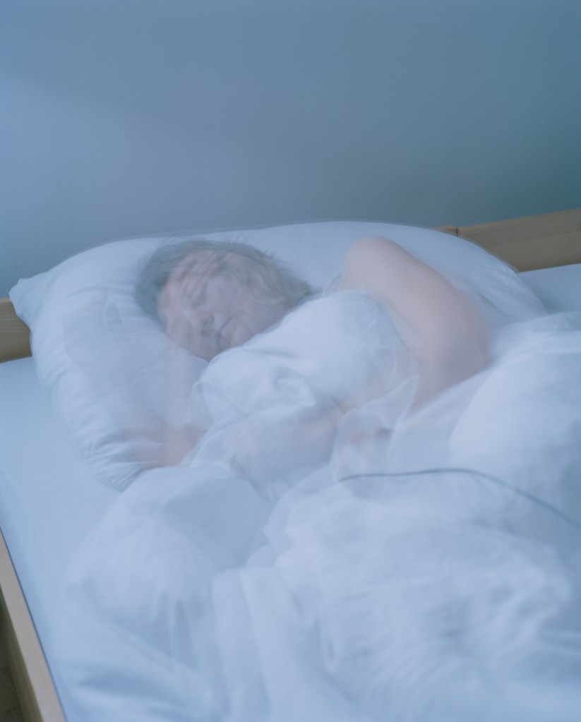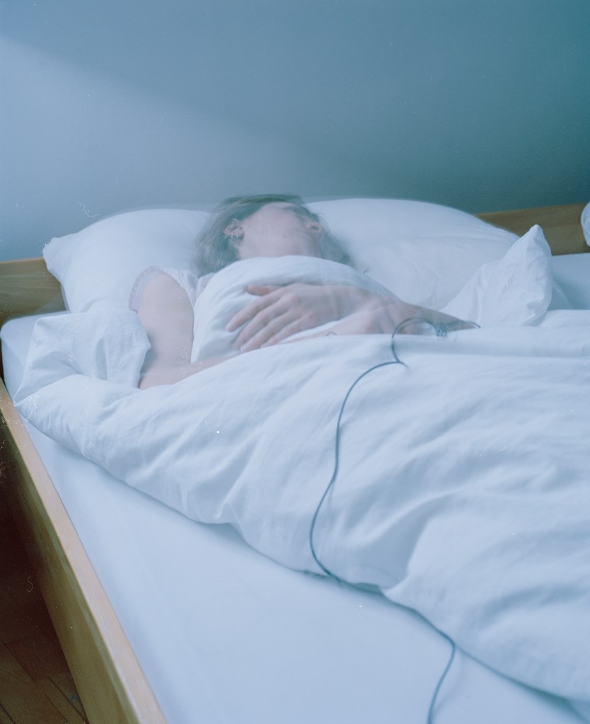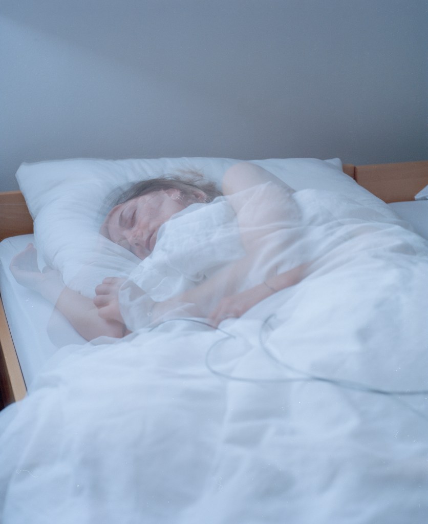 Die fotografische Serie 12 Morgen besteht aus zwölf Fotografien à 20 x 16 cm. Gezeigt werden Selbstporträts im Bett.